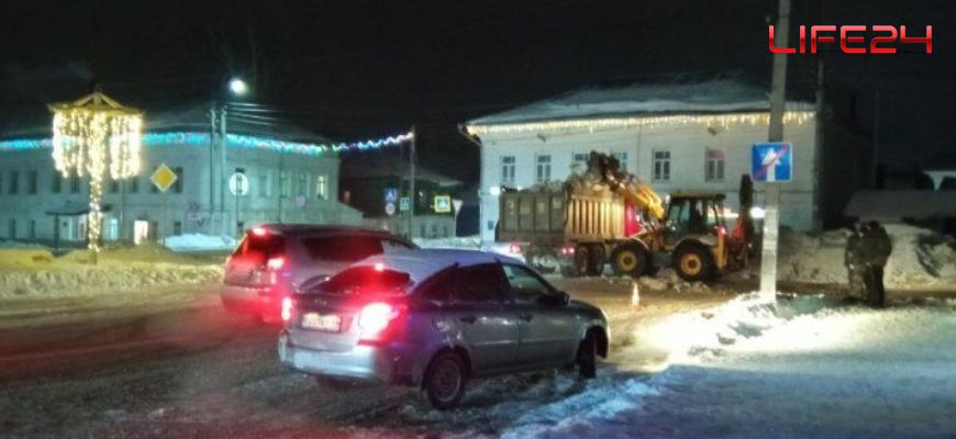 Работы по уборке снега также проводились около Судиславской районной больницы.