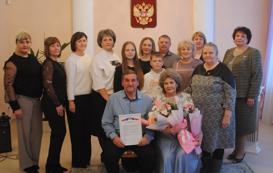 В отделе ЗАГС поселка Судиславль состоялась торжественная церемония чествования супружеской пары Алексея Владимировича и Лидии Сергеевны Гуриных, проживших вместе 50 лет, узнал корреспондент издания SMINEWS в Судиславле.