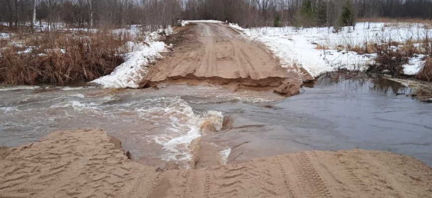 Это трубопереезд, ведущий к деревням Дудкино и Поповское в Судиславском округе. Со 2 апреля транспортное сообщение с населёнными пунктами было нарушено из-за поднявшегося уровня воды в реке Корбе.