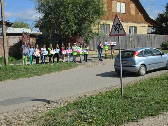 выступили с агитацией за безопасность пешеходов в районе расположения центральных школ поселка.