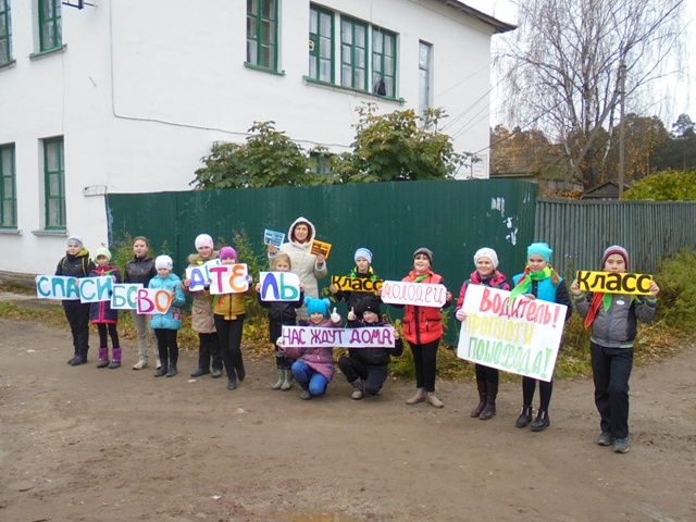 ребят держали в руках таблички с надписью «Водитель, пропусти пешехода!».