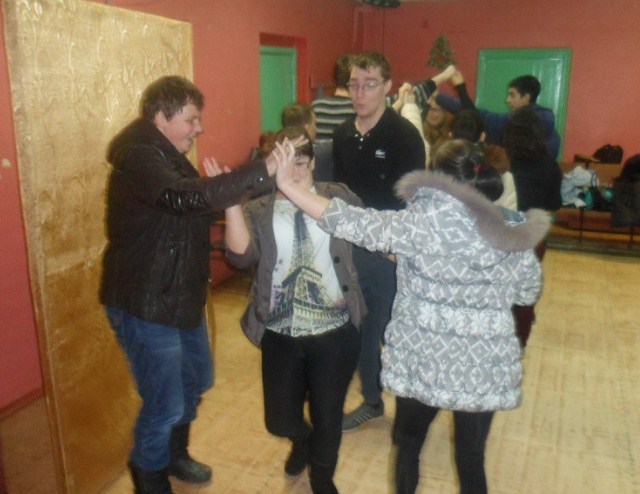 обнимались и веселились при этом, танцевали в парах медленные танцы, также танцы под