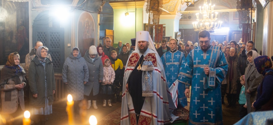 Высокопреосвященному владыке сослужили: настоятель храма протоиерей Николай Гангур, иерей Михаил Мостовой, протодиакон Сергий Мальцев, диакон Серафим Степанов, диакон Сергий Соловьёв.
